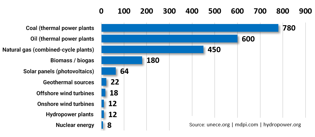 Electricity can have an almost negligible carbon footprint – or be exceedingly "dirty": everything depends on how it is produced. A kilowatt-hour from a nuclear plant or a wind turbine emits only a few grams of CO₂, whereas the same kilowatt-hour from coal can emit up to two hundred times more. Thus, an electric car is not necessarily clean: if it is charged with electricity generated from coal, it indirectly "emits" far more CO₂ than when it is powered by nuclear or renewable energy. In such cases, the absence of a tailpipe does not mean the absence of emissions – they have merely been released upstream, at the power plant that generated the electricity stored in the battery.